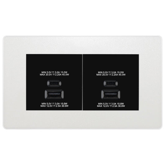 BG Evolve Pearlescent White 4G Faceplate with 45W USB A+C Charger Modules – Black Insert
