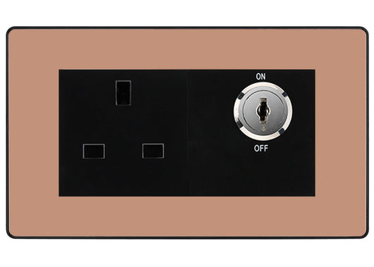 This key-controlled 13A double pole socket kit is custom-assembled using genuine BG components — a faceplate and a key switch module — to create a safe and reliable power solution. It’s ideal for areas where power access needs to be restricted, such as schools, offices, or workshops. The socket activates only when the key switch is turned on, preventing unauthorized use. Designed with a sleek Polished Copper Polycarbonate appearance and smooth edges, this unit combines durability, safety, and a professional finish. Easy to install and built for dependable performance, it offers a smart solution for controlled power access.