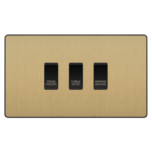 BG Evolve Satin Brass Custom Appliance Grid Switch 3 Gang Screwless
