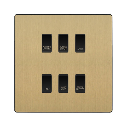 BG Evolve Satin Brass Custom Appliance Grid Switch 6 Gang Screwless