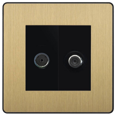 The PCDSBTVSATB is a TV & satellite socket from the BG Evolve range, finished in satin brass and built using the BG Euro Modular system. The BG Evolve range is new on the outside with a polycarbonate front plate and contrast frame, but the inside is the same trusted technology as the BG Nexus Metal range. The satin brass finish comes with contrast black frame and black inserts.