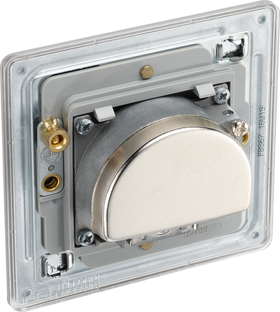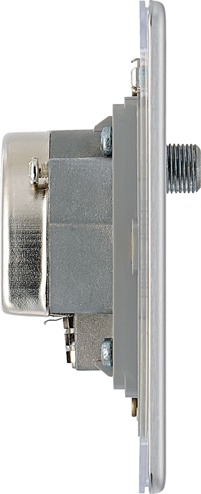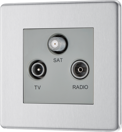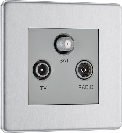 BG FBS67 Flatplate Screwless Triplex TV/FM/Sat socket - Screened, Brushed Steel - Grey Insert