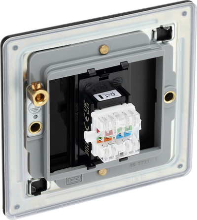 BG Flatplate Screwless Matt Black 1 Gang Single RJ45 Telephone Socket FFBRJ451
