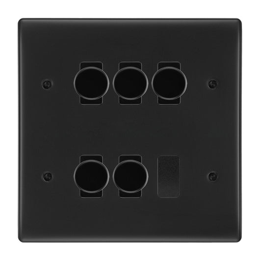 BG Matt Black 5 Gang 2 Way Trailing Edge Dimmer LED Compatible Custom Grid Switch