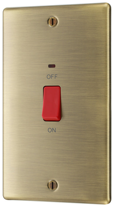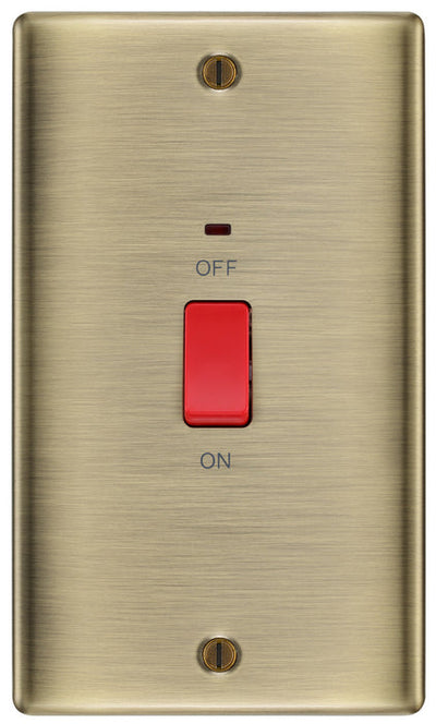 BG NAB72 Nexus Metal | Antique Brass | 2 Gang Double Plate 45A 2 Pole Neon Cooker Switch