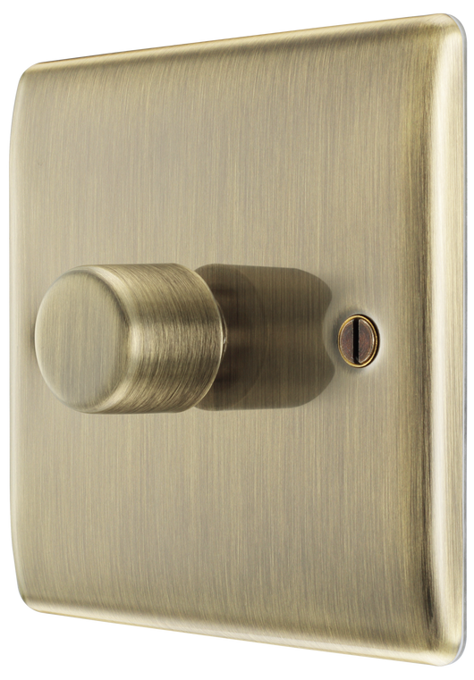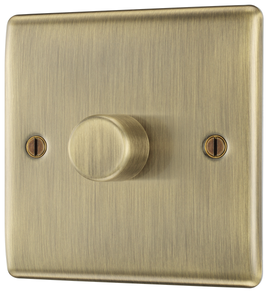 BG NAB81 Antique Brass Trailing Edge Single Dimmer Switch 1 Gang 2 Way LED