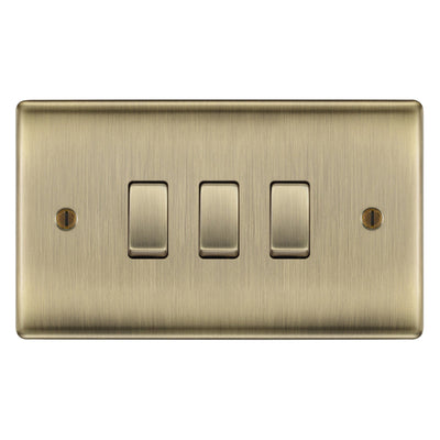 BG Nexus Antique Brass 3 Gang Switch 2x Intermediate 1x 1 or 2 Way Custom Grid