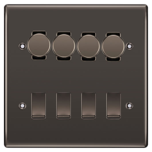 BG Nexus Black Nickel 8 Gang Switch 4x Trailing Edge LED Dimmer 4x 2Way Custom Switch