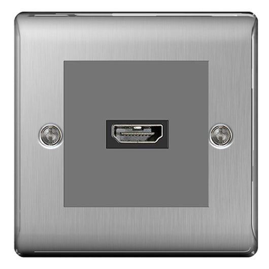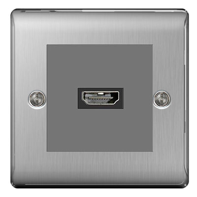 BG Nexus Brushed Steel HDMI Socket Grey Insert