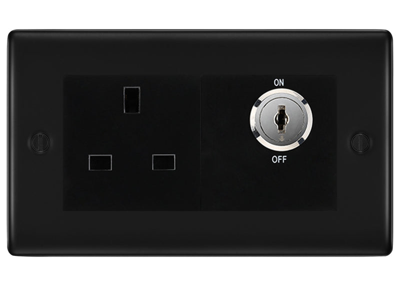 BG Nexus Matt Black 13A Double Pole Key Controlled Socket – Black Inserts