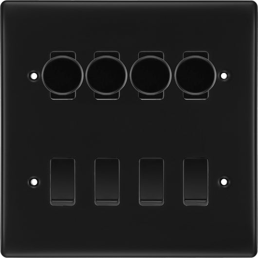 BG Nexus Matt Black 8 Gang Switch 4x Trailing Edge LED Dimmer 4x 2Way Custom Switch