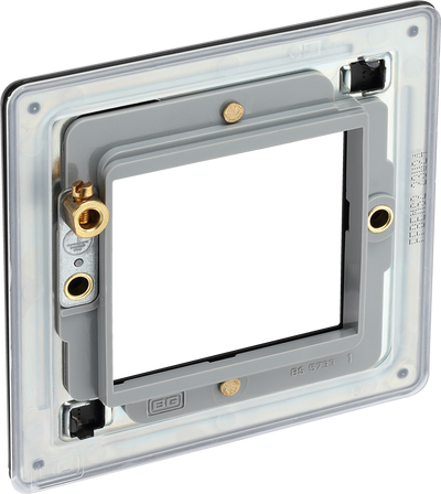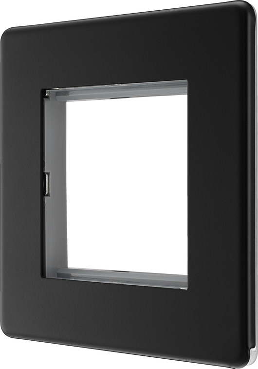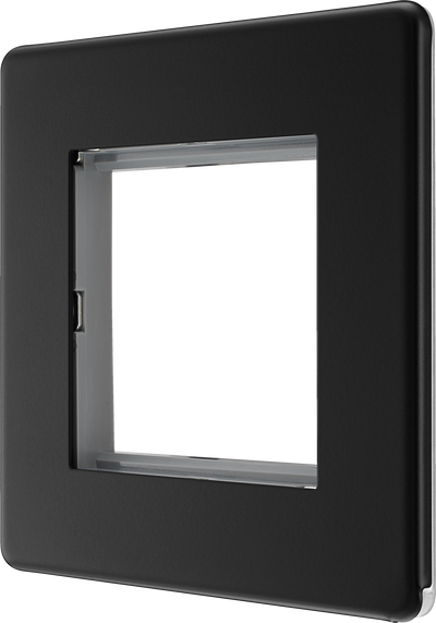 The Euro module range from British General combines plates and interchangeable modules so you can configure your own bespoke switches and sockets. This Screwless Flatplate matt black finish plate aperture can accommodate one 50mm wide module or two 25mm wide modules and has a slim clip-on/off front-plate to add a touch of luxury to your decor.