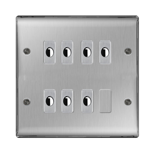 BG Nexus Metal Brushed Steel 7 Gang Flex Outlet Socket