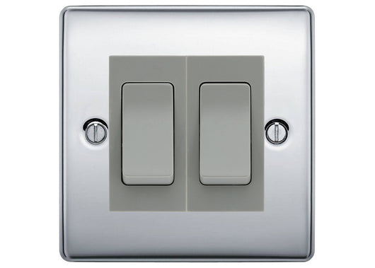 BG Nexus Polished Chrome 2-Gang Light Switch 1x 2-Way + 1x Intermediate – Grey Inserts