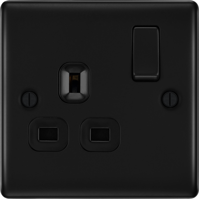 BG NFB21B Nexus Metal Matt Black 1 Gang 13A Double Pole Switched Socket