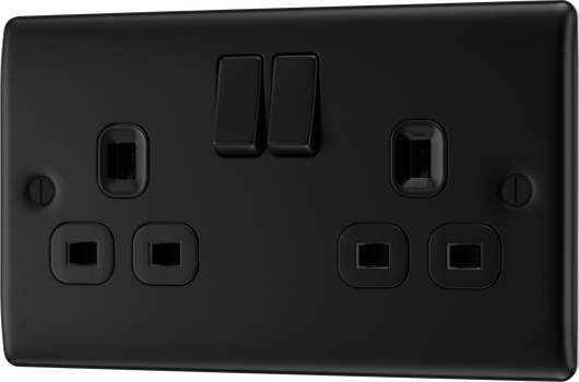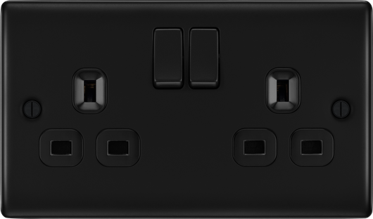 BG NFB22B Nexus Metal Matt Black 2 Gang 13A Double Pole Switched Socket