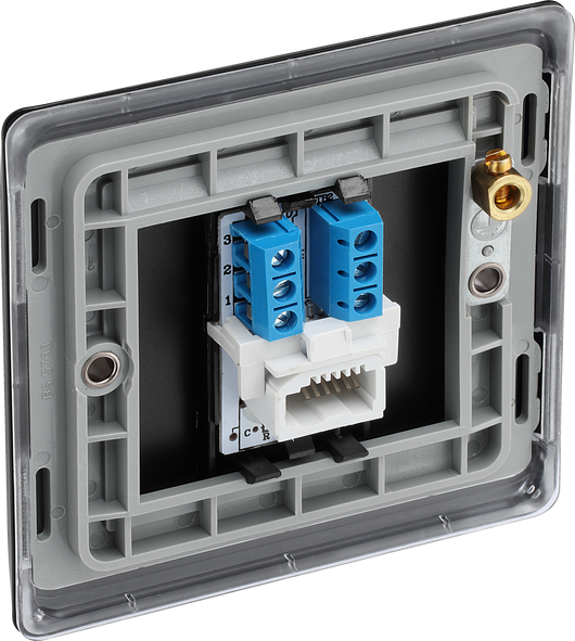 This secondary telephone socket from British General uses a screw terminal connection and should be used for an additional telephone point which feeds from the master telephone socket. This matt black finish socket has a sleek and slim profile, with softly rounded edges to add a touch of luxury to your décor.