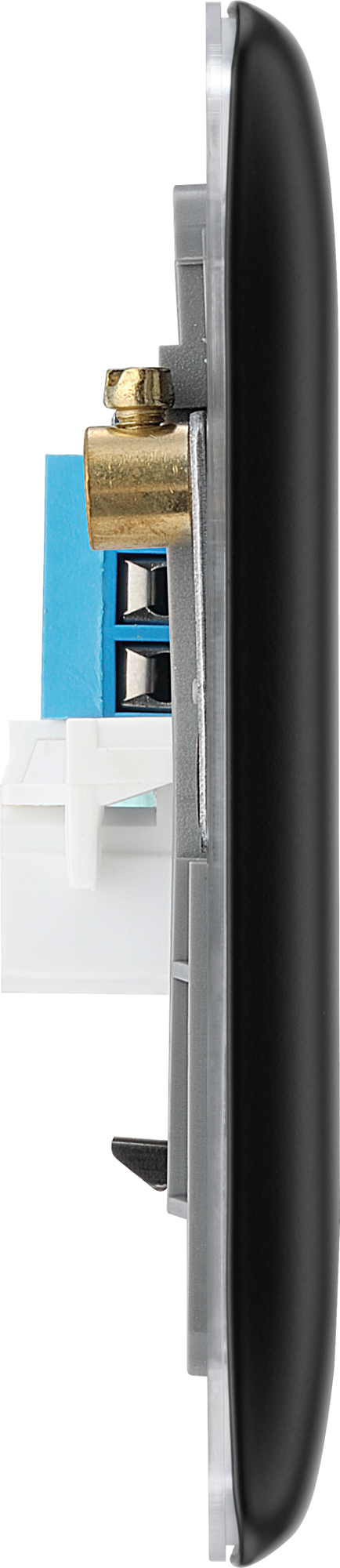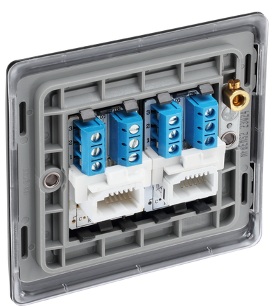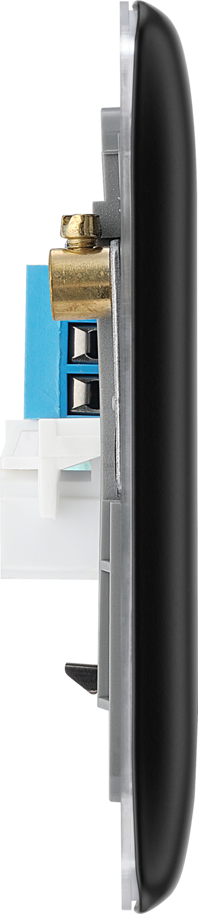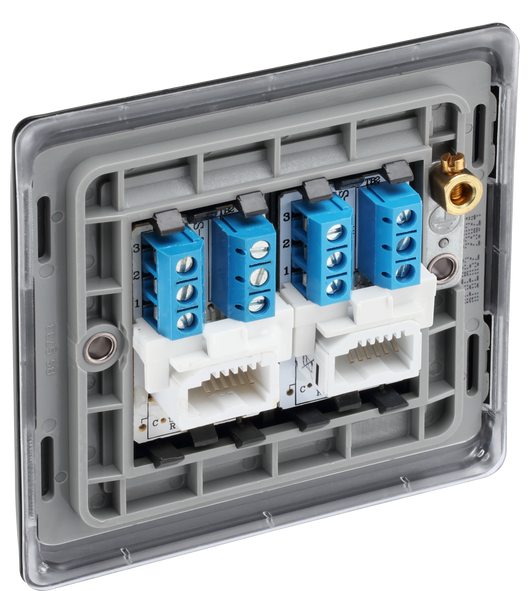 This double secondary telephone socket from British General uses a screw terminal connection and should be used for additional telephone points which feed from the master telephone socket. This matt black finish socket has a sleek and slim profile, with softly rounded edges to add a touch of luxury to your décor.