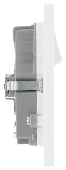 The socket has been designed with angled in line colour coded terminals and backed out captive screws for ease of installation, and fits a 25mm back box making it an ideal retro-fit replacement for existing sockets, and has a low profile screwless flat plate that clips on and off, making it ideal for modern interiors.