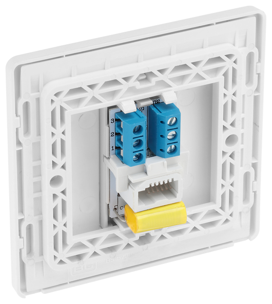 This Evolve pearlescent white master telephone socket from British General uses a screw terminal connection, and should be used where your telephone line enters your property.