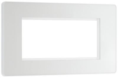 This Evolve pearlescent white plate aperture can accommodate up to four 25mm wide modules or two 50mm wide modules, and has a low profile screwless flat plate that clips on and off, making it ideal for modern interiors.