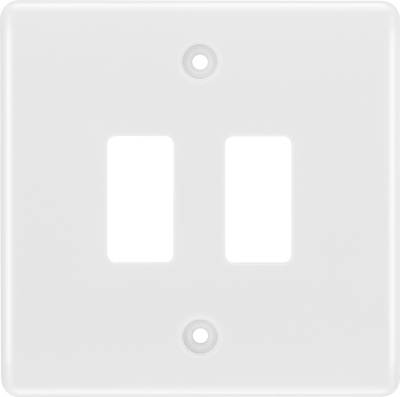The Grid modular range from British General allows you to build your own module configuration with a variety of combinations and finishes. This sleek and slim white metal front plate has softly rounded edges with colour matched screw covers for a sleek appearance and can accommodate 2 Grid modules - ideal for switches and other domestic applications.