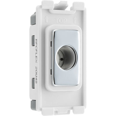 The BG Electrical Nexus Grid RPCFLEX is a polished chrome flex outlet module with cord grip, for up to 10mm cable.
