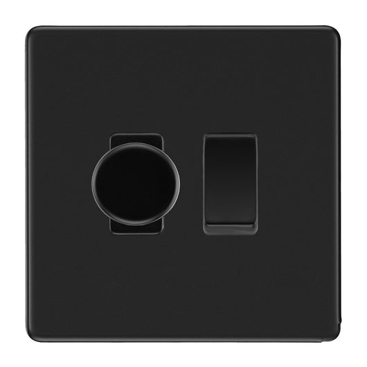 BG Screwless Flatplate Matt Black 2 Gang Grid Switch 1x Trailing Edge LED Dimmer 1x 2 Way