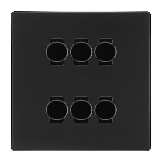 BG Screwless Flatplate Matt Black 6 Gang 2 Way Trailing Edge Dimmer LED Compatible Custom Grid Switch