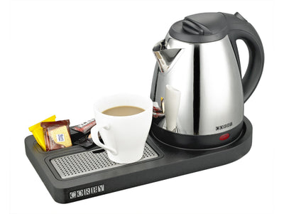 The Corby Buckingham Compact Welcome Tray in black is an attractive and elegant in-room beverage solution.