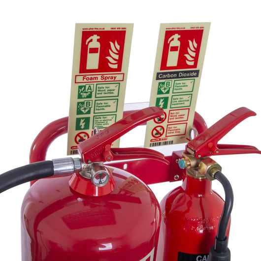 Please note: Stands do NOT include fire extinguishers. These stands are unsuitable for 5kg CO2 fire extinguishers and 6kg / 6ltr or larger P50 service-free fire extinguishers due to the height and location of the bracket on the cylinder.