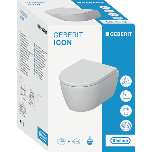 Geberit iCon Rimless Wall Hung Pan With Seat - 490mm Projection - 502.381.00.1