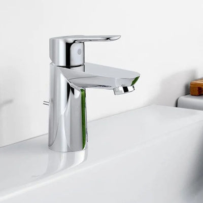 The Grohe BAUEDGE Basin Mixer Tap; 1/2 Inch; with Pop Up Waste; Chrome is part of the BauEdge range from Grohe and this Basin Mixer Tap is a popular choice. With a Brass Bodied construction; this Basin Mixer Tap is supplied with with Pop Up Waste and the minimum water pressure required is 1.0 Bar. This Deck Mounted tap requires 1 Tap Holes to install and is operated with 1 Handle. Consider this tap for you bathroom today.