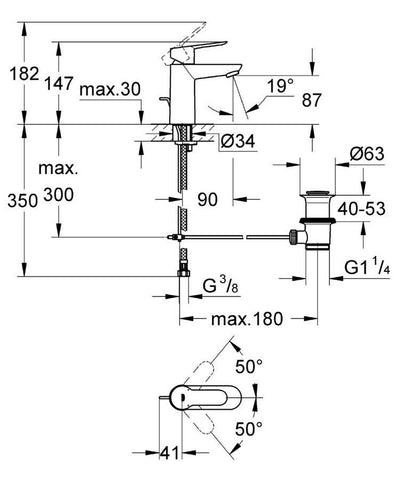 Grohe BauEdge Cloakroom Mono Basin Mixer Tap with Waste - Chrome 23356000