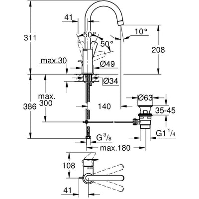 Grohe BauEdge; l-size basin tap w/ pop up waste