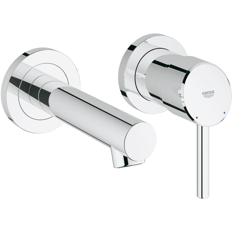 The Grohe CONCETTO 2 Tap Hole; Basin Mixer Tap; S-Size; Wall Mounted; Trim Set Only; Chrome is part of the Concetto range from Grohe and this Basin Mixer Tap is a popular choice. To complete your tap installation; a concealed valve will be required to complete the installation. This Wall Mounted tap requires 2 Tap Holes to install and is operated with 1 Handle. Consider this Basin Mixer Tap for your bathroom today.