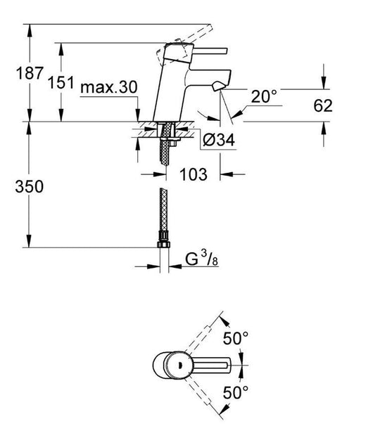 The Grohe CONCETTO Basin Mixer Tap; 1/2 Inch S-Size; No Waste; Chrome is part of the Concetto range from Grohe and this Basin Mixer Tap is a popular choice. With a Brass Bodied construction; this Basin Mixer Tap is supplied with No Waste and the minimum water pressure required is 0.2 Bar. This Deck Mounted tap requires 1 Tap Holes to install and is operated with 1 Handle. Consider this tap for you bathroom today.