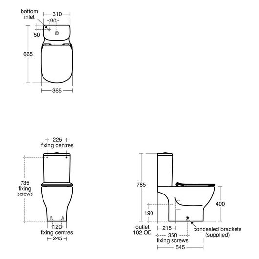 - Closed Coupled toilet with horizontal soil pipe outlet