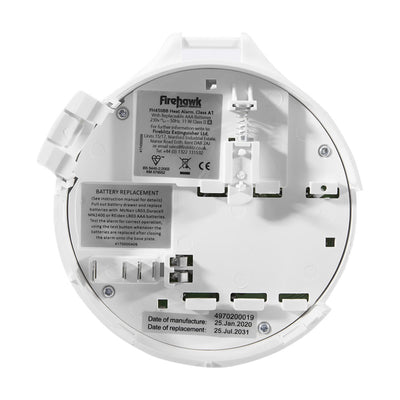 Mains Powered Heat Alarm with Alkaline Back-up Battery - Firehawk FHN450BB