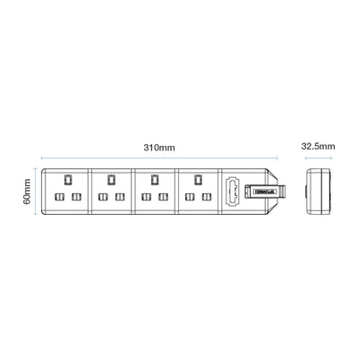 Masterplug ELS134B Black 4 Gang 13A Trailing Socket