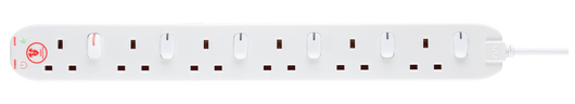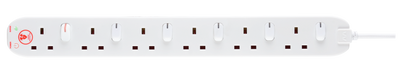 This Masterplug six socket surge protected extension lead allows you to individually control your plugged-in electrical appliances. The white moulded extension lead has six sockets each with their own individual switch, letting you control different appliances individually, which helps you save power and avoid the risk of overheating. The extension lead also has a power indicator, which lets you know when the extension lead is plugged in. Taking the struggle out of trying to use more than one electrical appliance with limited numbers of sockets with this six socket surge protected extension lead with individual switches. The surge protected extension lead is designed to protect your electrical appliances from power surges and spikes.