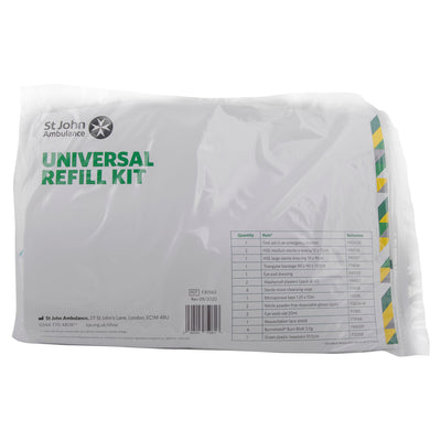 - Replenish first aid essentials in the St John Ambulance Universal First Aid Kit and any other first aid kit