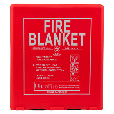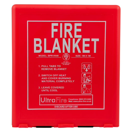 The UltraFire fire blankets are made from high quality material and stored in a tough and durable wall mounted case. The 1.0m x 1.0m size blankets are suitable for smaller kitchens, waste bins and clothing fires.