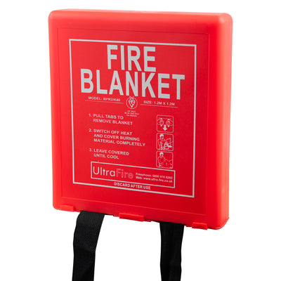 The UltraFire fire blankets are made from high quality material and stored in a tough and durable wall mounted hard case. The 1.2m x 1.2m size blankets are suitable for medium sized and commercial kitchens, waste bins and clothing fires, caravans and boats.